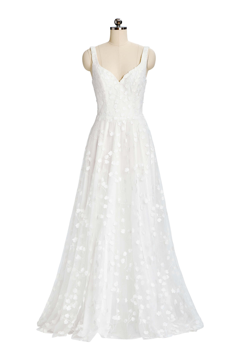 Hver kjole er designet med sans for detaljen – fra de delikate blonder og 3D-applikationer til de eksklusive materialer som mikado satin og let tyl.